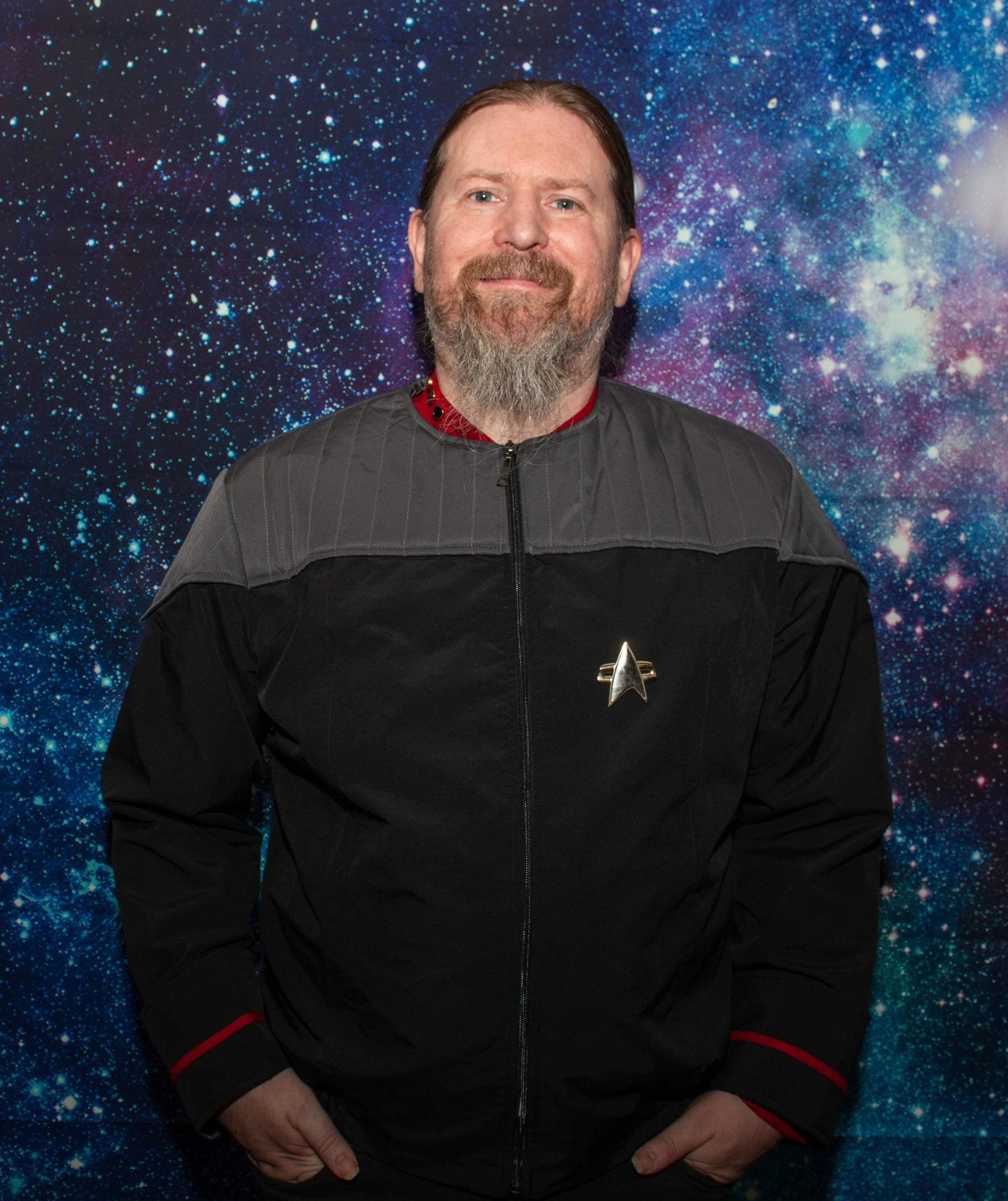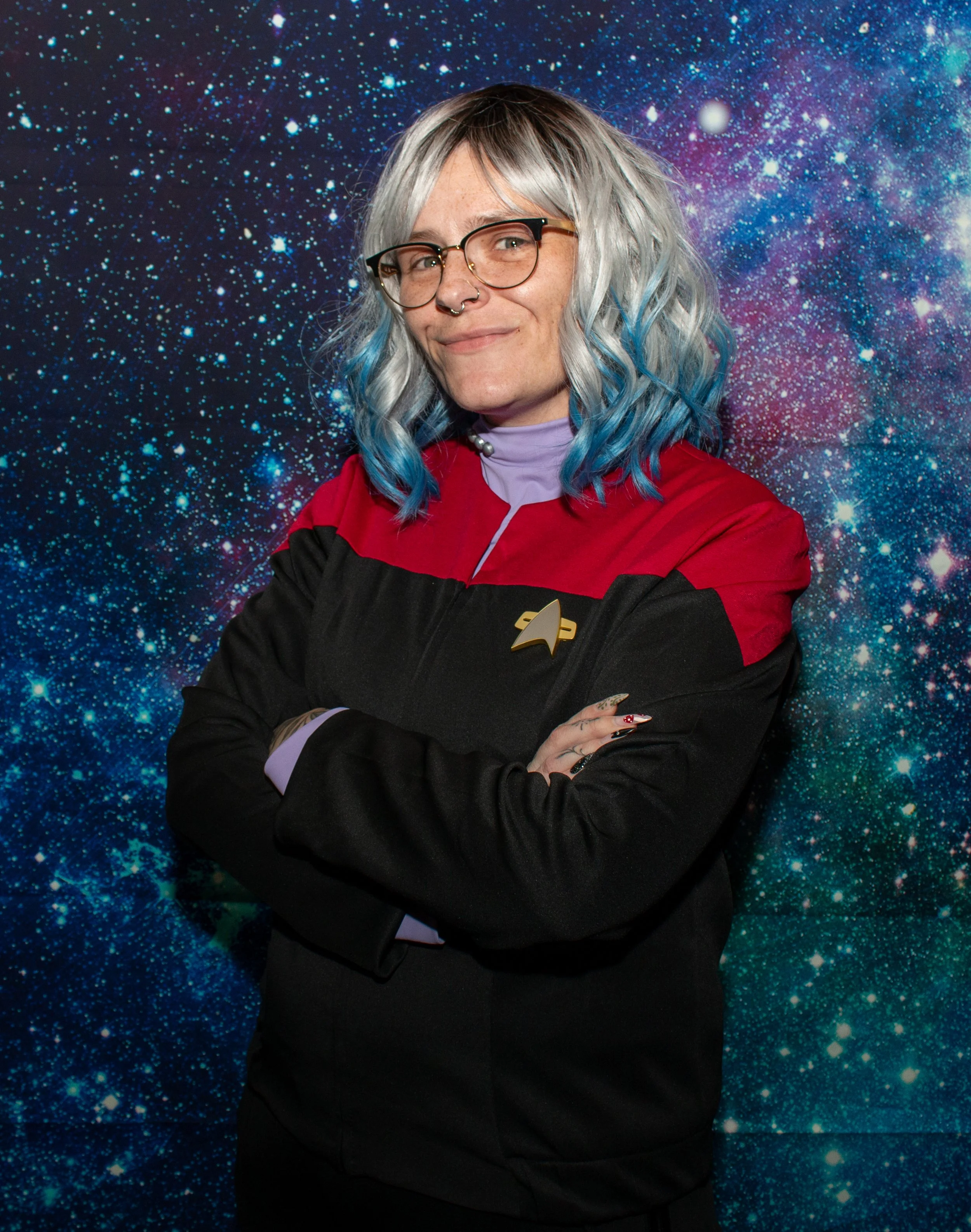 Captain Kristance Buelow is known for her steady leadership, strategic mind, and deep empathy for her crew. Unlike many Starfleet officers who grew up steeped in the lore of exploration and diplomacy through the lens of Star Trek, Kristance’s introduction to the series came later in life. As a teenager, she began watching it with her foster dad, Paul, whose kindness and integrity mirrored the very ideals of Starfleet. Paul’s influence left a lasting mark on her, shaping her sense of justice, curiosity, and responsibility. Today, Captain Buelow strives to uphold the principles that Paul lived by, forging a path of thoughtful exploration and inclusive leadership aboard the Cutty Sark. Kristance balances her role as the captain of The Sark with her life as a mother of three teenagers. Known for her creativity and curiosity, she enjoys weaving, reading, caring for houseplants, cosplay, and cocktails. A devoted fan of both coffee and tea, she appreciates the fortitude of Captain Janeway and the diplomacy of Captain Picard, but her true admiration lies with Captain Rachel Garrett of the USS Enterprise-C, whose courage and sacrifice deeply resonate with her. Grounded yet imaginative, Captain Buelow brings a thoughtful, compassionate approach to both her command and her family.